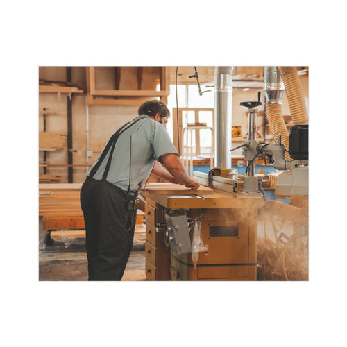 This canvas print captures an authentic moment inside a furniture builder’s workshop, offering a refined view into the process behind handcrafted pieces.